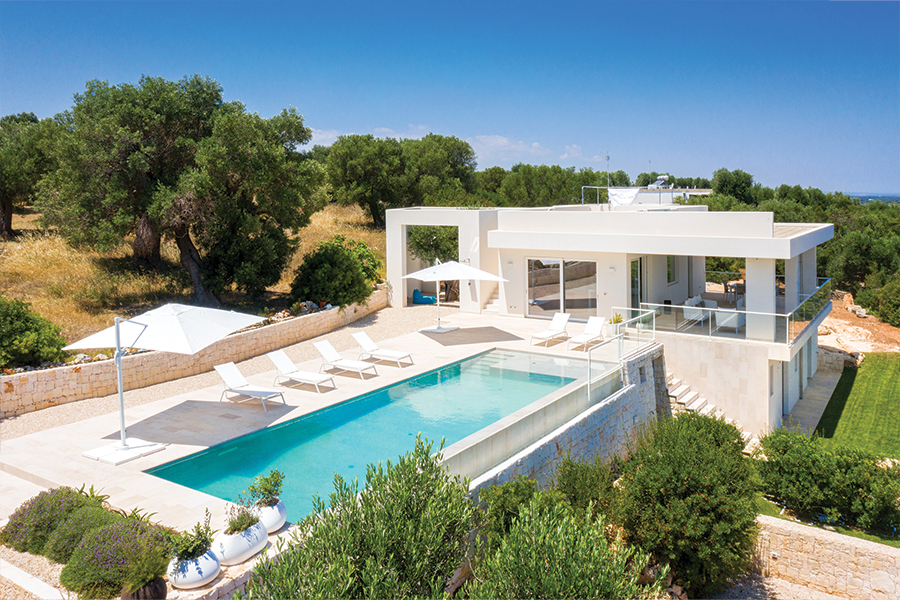 Nestled near some of Puglia’s most beautiful beaches, Villa Cielo Blu stands as a modern luxury residence in an unbeatable geographical location. With a spectacular infinity pool featuring saltwater and breathtaking views, Villa Cielo Blu is among the finest villas for a special holiday in Puglia. Furnished with great attention to detail, it seamlessly combines simple design with maximum comfort.