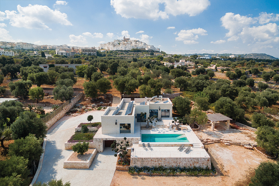 Nestled among olive groves, Villa Rosa offers a sweeping view of the Puglia coast and countryside, providing a unique experience.